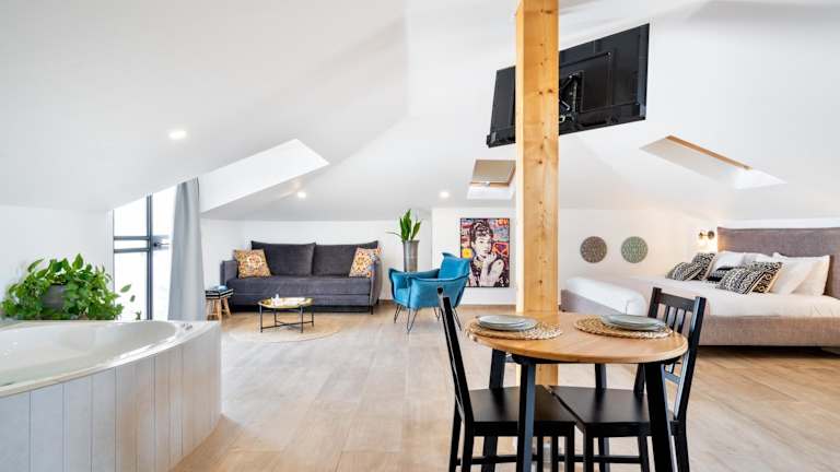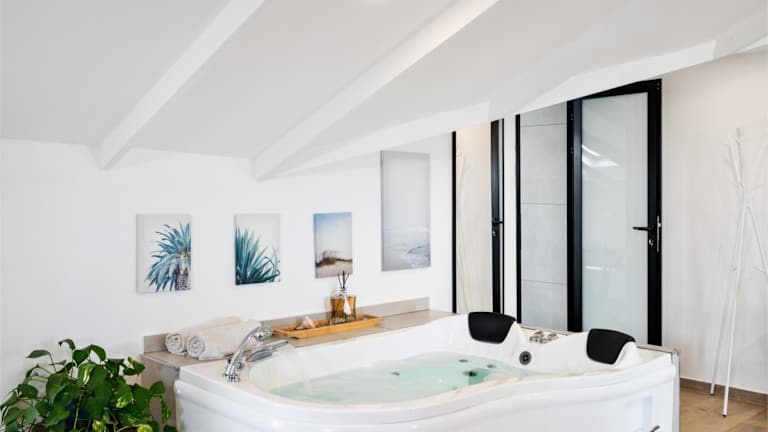 Die Unterkunft verfügt über einen Whirlpool, in dem Sie sich entspannen und die Seele baumeln lassen können. Genießen Sie außerdem die Sonnenterrasse, auf der Sie die warme Sonne genießen und die schöne Umgebung bewundern können.