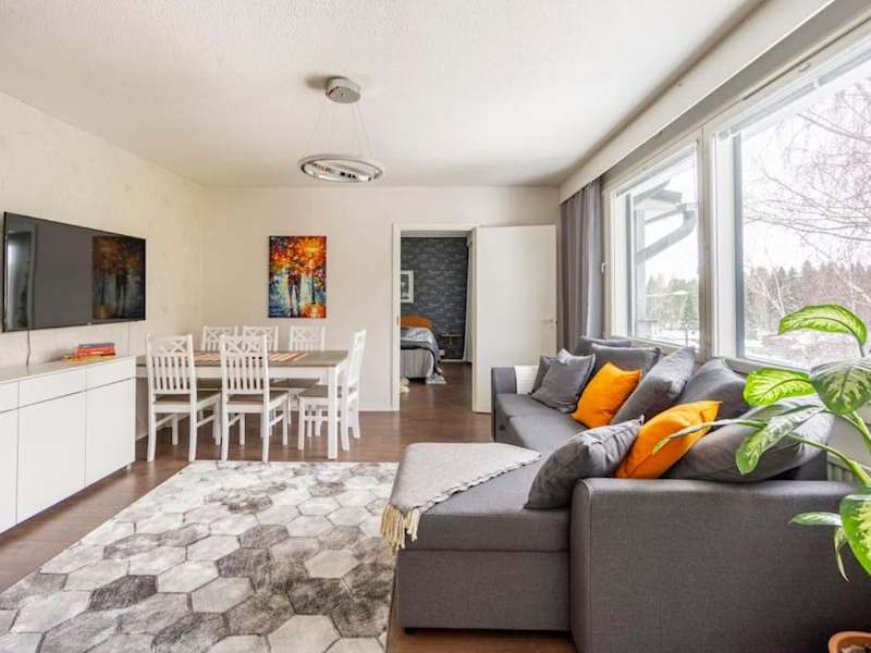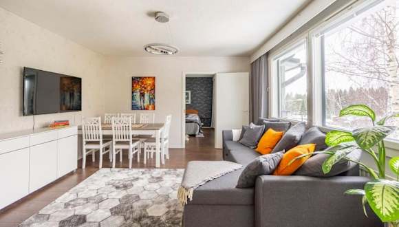 Das klimatisierte Apartment im Valoisa huoneisto jossa erinomaiset vuoteet verfügt über 2 gemütliche Schlafzimmer, ein geräumiges Wohnzimmer und eine voll ausgestattete Küche. Die moderne Einrichtung und die großen Fenster sorgen für eine helle und einladende Atmosphäre. Die Betten sind von erstklassiger Qualität und garantieren einen erholsamen Schlaf. Das Apartment bietet auch ein modernes Badezimmer mit einem Bidet und einer Dusche. Handtücher und Bettwäsche werden gestellt, um Ihren Aufenthalt so angenehm wie möglich zu gestalten.