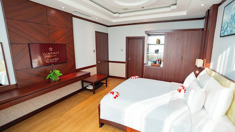 Die Zimmer im Van Phat Riverside Hotel sind elegant und voll klimatisiert. Sie verfügen über einen Flachbild-Kabel-TV, eine Minibar und einen gemütlichen Sitzbereich. Das eigene Badezimmer ist mit einer Dusche und einer Badewanne ausgestattet und kostenlose Pflegeprodukte stehen für Sie bereit. Für Ihre Unterhaltung stehen Ihnen auch Karaoke-Einrichtungen zur Verfügung.