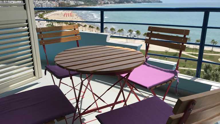 Das Apartment verfügt über zwei Schlafzimmer, ein Wohnzimmer mit einem Flachbild-TV, eine gut ausgestattete Küche und zwei Badezimmer mit Dusche. Ein Balkon mit Meerblick ergänzt das Angebot.