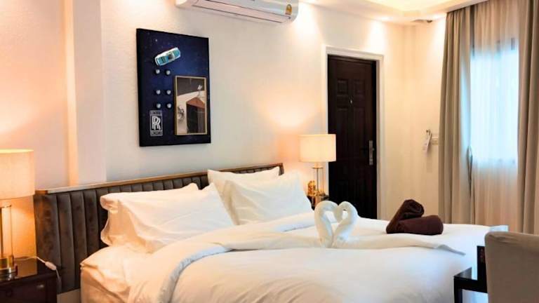 Die klimatisierten Zimmer der Unterkunft sind mit einem Schreibtisch, Wasserkocher, Kühlschrank, Minibar, Safe, Flachbild-TV sowie einer Terrasse ausgestattet. Jedes Zimmer verfügt über ein eigenes Badezimmer mit Dusche. Einige Zimmer bieten zudem einen Blick auf den Pool und einen Balkon.