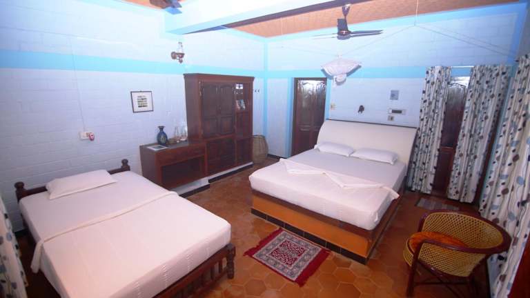 Die Zimmer im Varkala Marine Palace sind komfortabel und bieten einen angenehmen Aufenthalt. Sie verfügen über einen Kleiderschrank, Bettwäsche und einen Balkon mit Blick auf den Garten. Die Zimmer haben auch ein eigenes Bad mit einem Bidet und kostenfreien Pflegeprodukten. Einige Zimmer verfügen über eine Küchenzeile mit einem Kühlschrank, so dass Sie Ihre eigenen Mahlzeiten zubereiten können.