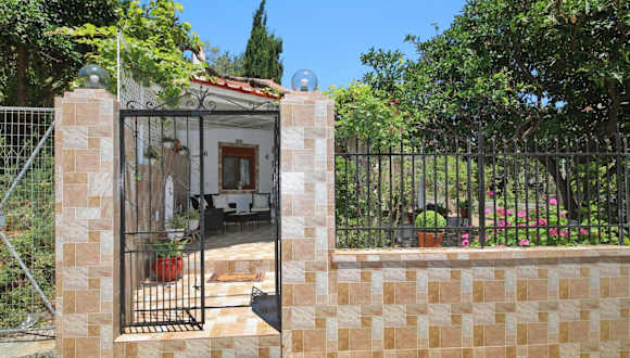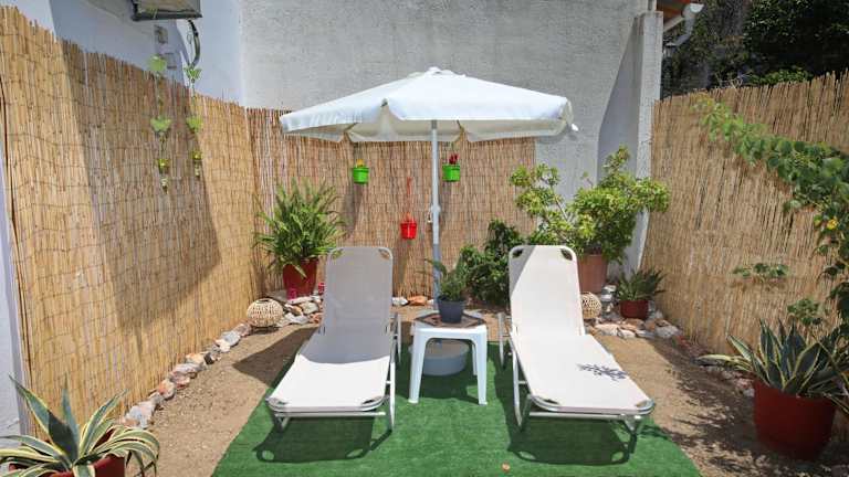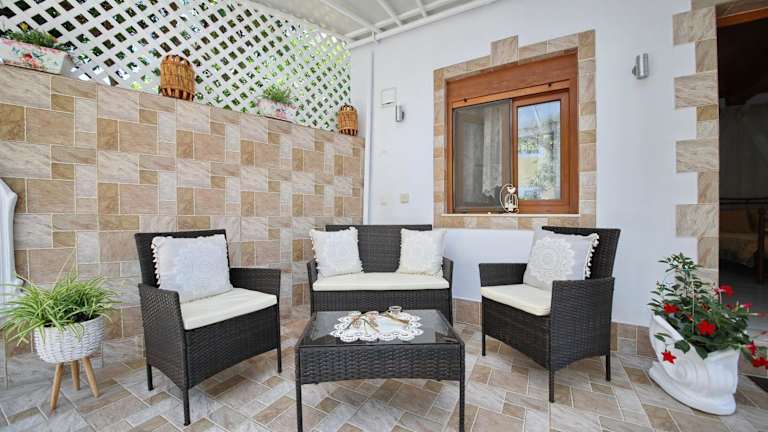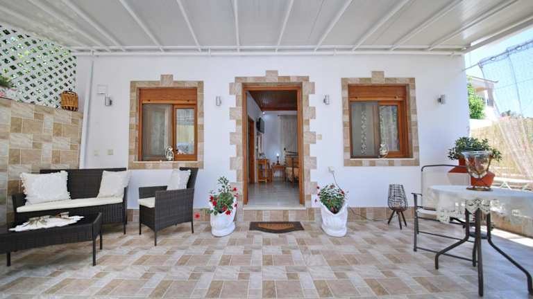 Vasia's Small Villa bietet klimatisierte Übernachtungsmöglichkeiten mit einer Veranda oder einem Patio sowie Blick auf den Garten. Es handelt sich um eine Ferienwohnung mit einem Schlafzimmer und einem Badezimmer.