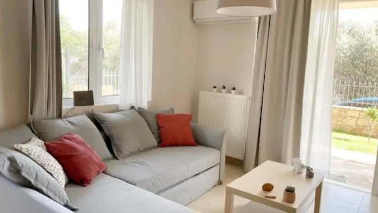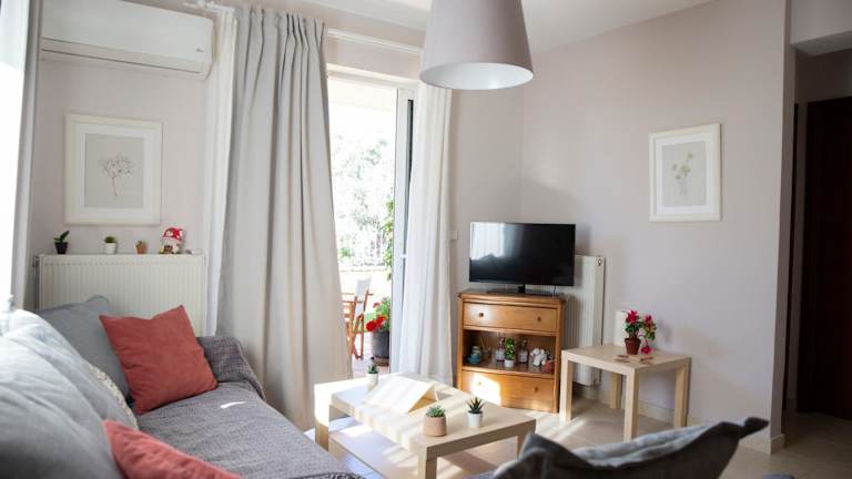 Das klimatisierte Apartment im Vasiliki's House verfügt über ein Schlafzimmer, ein gemütliches Wohnzimmer und eine voll ausgestattete Küche mit Kühlschrank und Kaffeemaschine. Das Badezimmer ist mit einer Dusche und kostenlosen Pflegeprodukten ausgestattet. Handtücher und Bettwäsche werden gestellt, um Ihren Aufenthalt so angenehm wie möglich zu gestalten. Vom Apartment aus haben Sie einen herrlichen Blick auf den Garten.
