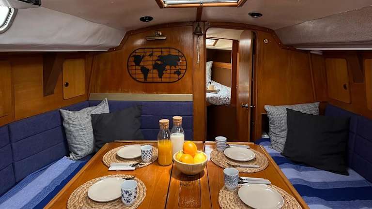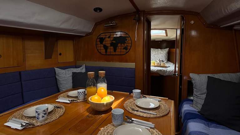Das Boot verfügt über zwei Schlafzimmer sowie ein Wohnzimmer mit einem Flachbild-TV. Eine voll ausgestattete Küche ist ebenfalls vorhanden. Handtücher und Bettwäsche werden bereitgestellt.