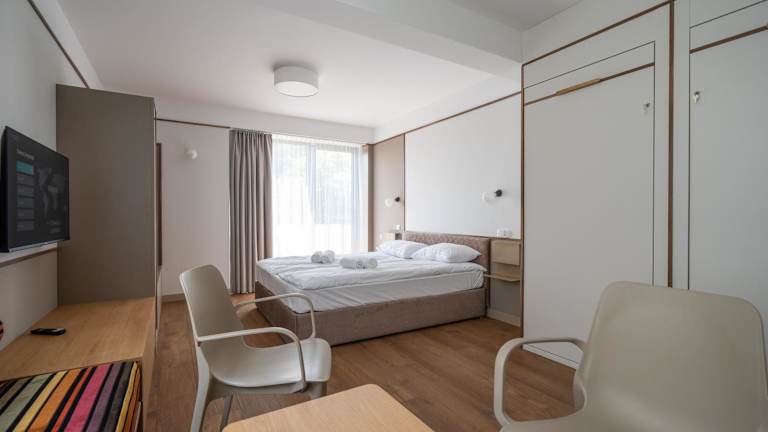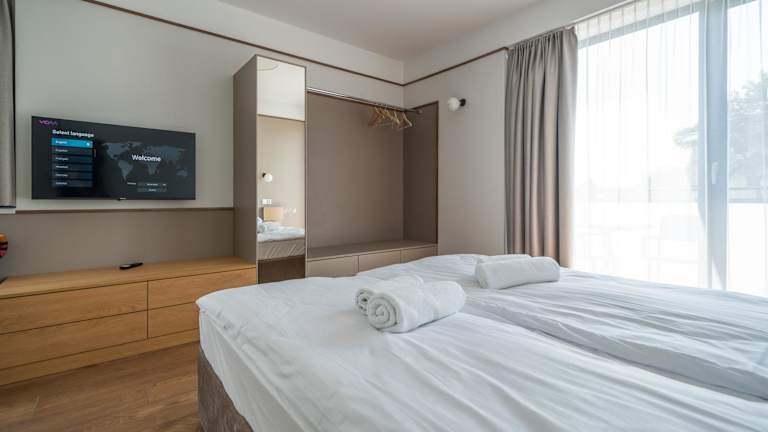Jedes Zimmer in der Unterkunft Vellamo Dębki ist mit einer Klimaanlage, einem Kleiderschrank, einem Balkon mit Stadtblick und einem eigenen Badezimmer ausgestattet. Zur weiteren Ausstattung gehören ein Flachbild-TV, Bettwäsche, Handtücher sowie ein Kühlschrank. Die Zimmer sind zudem barrierefrei gestaltet.
