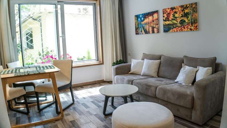 Venere Tirana Suite Deluxe bietet Übernachtungsmöglichkeiten und zeichnet sich durch moderne Annehmlichkeiten aus, darunter kostenfreies WLAN und einen Flachbild-TV. Die Unterkunft bietet einen Blick auf den Garten und ist klimatisiert.