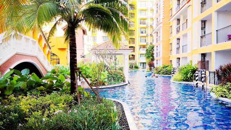 Das Venetian Poseidon Pool Hotel in Jomtien Beach ist ein erstklassiges Aparthotel, das mit seinen luxuriösen Annehmlichkeiten und seiner malerischen Umgebung begeistert. Genießen Sie den Außenpool, das Fitnesscenter und den Garten sowie die kostenfreien Privatparkplätze und WLAN. Die voll ausgestatteten Küchen und die komfortablen Zimmer mit Balkon bieten Ihnen den perfekten Rückzugsort. Entspannen Sie im Wellnessbereich mit Sauna und Hamam oder genießen Sie den Wasserpark und den Miniclub. Der Strand ist nur wenige Gehminuten entfernt.