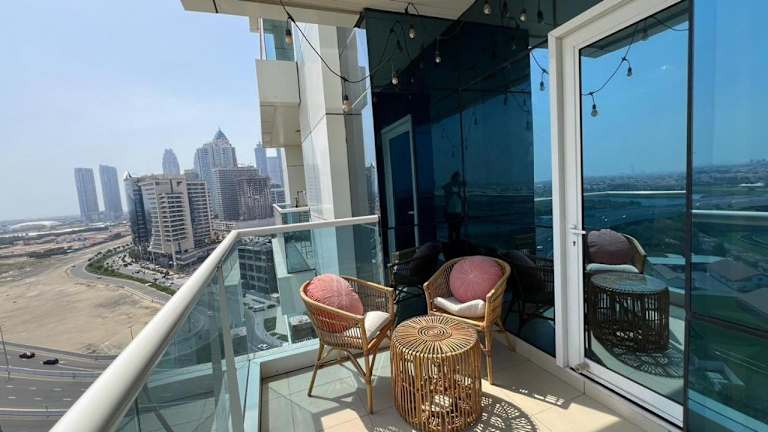 Das Venetian - 1BR Apartment in the Heart of Business Bay bietet einen Blick auf die Stadt sowie einen Balkon und ist ideal für Geschäftsreisende oder Urlauber, die in der Nähe wichtiger Sehenswürdigkeiten wohnen möchten.