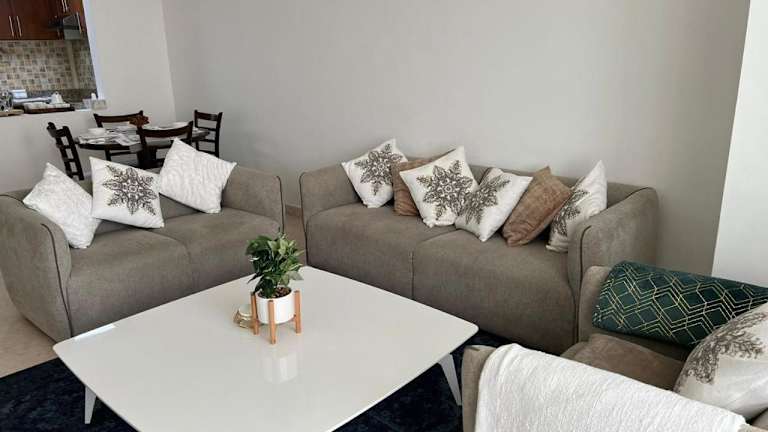 Die Ferienwohnung verfügt über 1 Schlafzimmer, ein Wohnzimmer und eine voll ausgestattete Küche mit Kühlschrank und Kaffeemaschine. Es gibt 2 Badezimmer, die mit einer Dusche und kostenlosen Pflegeprodukten ausgestattet sind. Handtücher und Bettwäsche werden bereitgestellt.