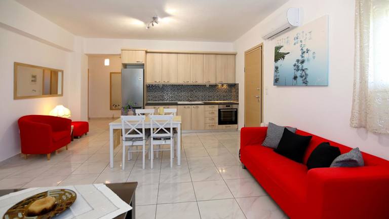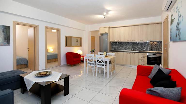 Die Zimmer verfügen über einen Sitzbereich, einen Flachbild-TV, eine voll ausgestattete Küche mit Kühlschrank und Ofen sowie ein eigenes Badezimmer mit Dusche und kostenlosen Pflegeprodukten. Ein weiteres Badezimmer ist mit einer Badewanne und einem Haartrockner ausgestattet.