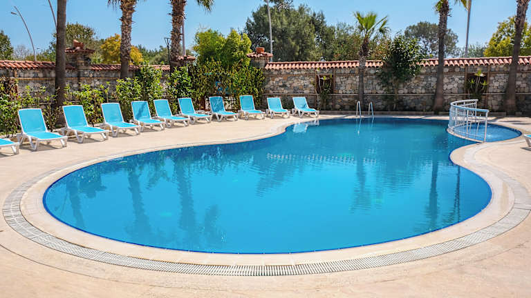 Das Hotel bietet einen Außenpool mit Kinderbereich, der sich ideal für aktive Erholung und Wassergymnastik eignet. Liegestühle und Sonnenschirme stehen den Gästen zur Verfügung.