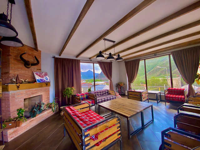 Das Veranda Guesthouse in Stepantsminda bietet seinen Gästen eine komfortable Unterkunft mit einem atemberaubenden Blick auf die Berge. Genießen Sie die Ruhe und Schönheit der Umgebung, während Sie in gemütlichen Zimmern mit Balkon und eigenem Bad übernachten. Die herzliche Gastfreundschaft des Personals und die kostenfreie WLAN-Nutzung runden das Angebot ab.