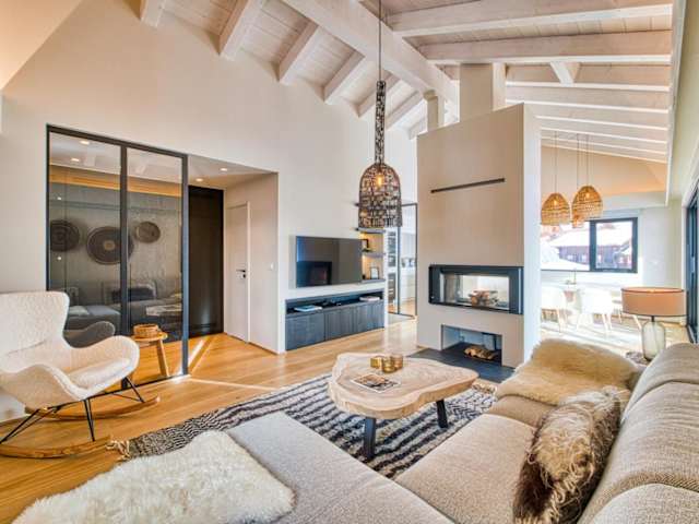 Das Chalet verfügt über drei Schlafzimmer, ein Wohnzimmer, einen Flachbild-TV, eine gut ausgestattete Küche mit Kühlschrank und Geschirrspüler sowie drei Badezimmer mit Dusche. Handtücher und Bettwäsche werden bereitgestellt.