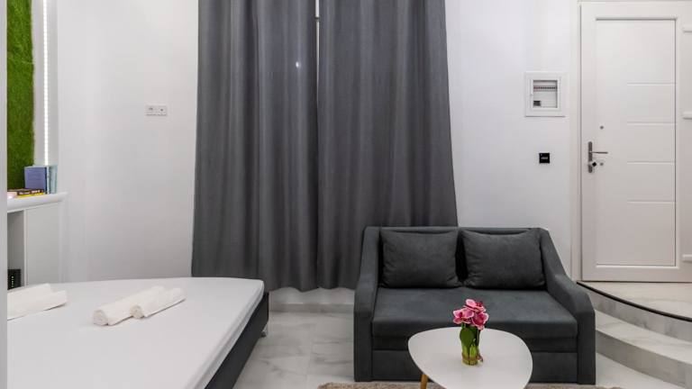 Das klimatisierte Apartment verfügt über 1 Schlafzimmer, ein Wohnzimmer und eine voll ausgestattete Küche mit einem Kühlschrank und einer Kaffeemaschine. Das Apartment bietet zudem ein Badezimmer mit einer Dusche und kostenlosen Pflegeprodukten. Handtücher und Bettwäsche werden den Gästen zur Verfügung gestellt.