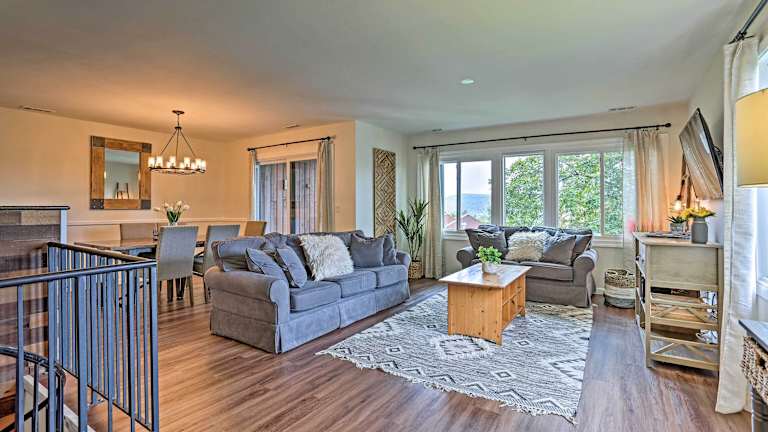Das Vernon Condo mit Deck liegt in Vernon Township und ist nur 48 km vom U-Bahnhof North Harriman und 42 km vom Hopatcong State Park entfernt. Die Lage ermöglicht es Ihnen, die Schönheit der umliegenden Natur zu erkunden, insbesondere den berühmten Appalachian Trail. In dieser Gegend gibt es auch Möglichkeiten zum Skifahren, um im Winter die verschneite Landschaft zu genießen. Der Flughafen Morristown Municipal Airport ist etwa 61 km vom Apartment entfernt.