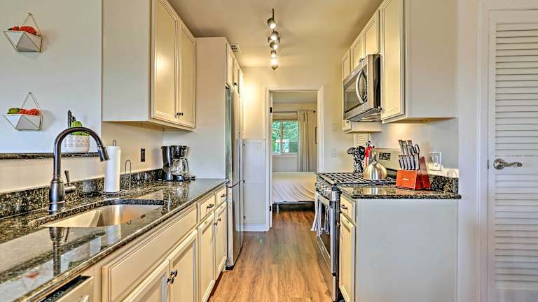 Das Vernon Condo mit Deck bietet eine voll ausgestattete Küche, in der Sie Ihre eigenen Mahlzeiten zubereiten können. In der Umgebung finden Sie auch verschiedene Restaurants und Cafés, in denen Sie lokale Spezialitäten genießen können.