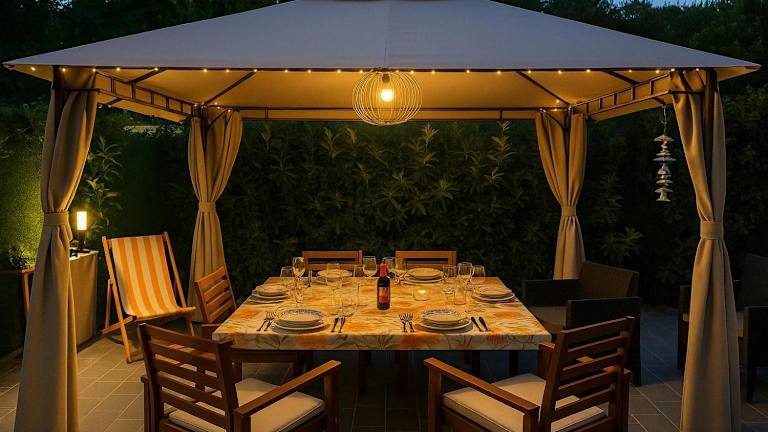 Das klimatisierte Ferienhaus verfügt über zwei Schlafzimmer, ein Wohnzimmer und eine voll ausgestattete Küche, die mit einem Kühlschrank und einer Kaffeemaschine ausgestattet ist. Es gibt zwei Badezimmer, die jeweils mit einem Bidet und einer Dusche ausgestattet sind. Weiterhin stehen ein Flachbild-TV mit Satellitenkanälen sowie ein Computer und ein Laptop zur Verfügung.