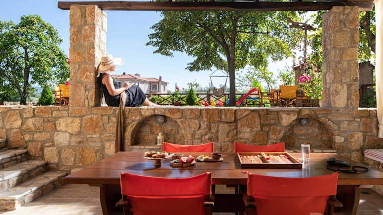 Die Vetrinos Apartments befinden sich im traditionellen Dorf Agios Nikolaos. Der Strand Trani Ammouda ist nur wenige Fahrminuten entfernt und lockt mit seinem türkisfarbenen Wasser. Von den Apartments aus haben Sie einen herrlichen Blick auf das Meer und den beeindruckenden Berg Athos. Im Dorfzentrum, das nur 700 m entfernt ist, finden Sie Bäckereien, Restaurants und Cafés, die zum Verweilen einladen. Der Flughafen Thessaloniki ist etwa 69 km entfernt.