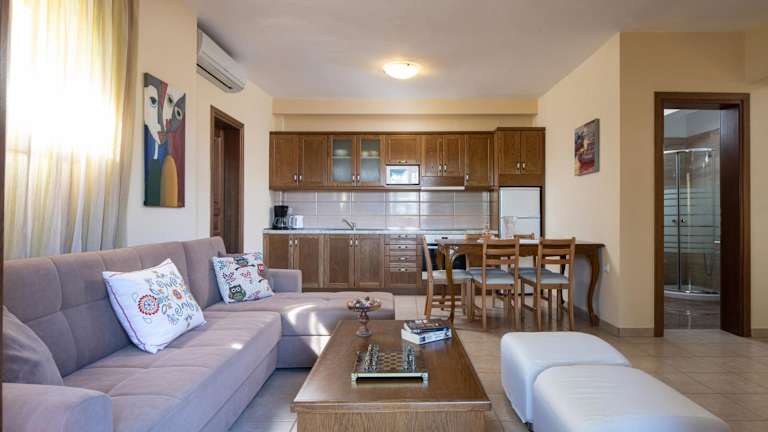 Die klimatisierten Apartments im Vetrinos sind gemütlich und bieten alles, was Sie für einen angenehmen Aufenthalt benötigen. Jedes Apartment verfügt über eine Terrasse mit Meerblick und Blick auf den Berg Athos. Eine komplett ausgestattete Küche ermöglicht es Ihnen, Ihre Mahlzeiten selbst zuzubereiten. Im Sitzbereich können Sie sich entspannen und einen 28-Zoll-LCD-TV nutzen. Zwei Schlafzimmer bieten ausreichend Platz für eine erholsame Nacht.