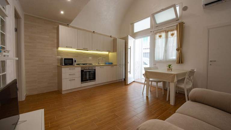 Die klimatisierte Ferienwohnung im VF casa vacanze verfügt über ein Schlafzimmer, ein Wohnzimmer mit einem Flachbildfernseher mit Streaming-Diensten, eine voll ausgestattete Küche mit Backofen und Mikrowelle sowie ein Badezimmer mit Bademänteln. Handtücher und Bettwäsche werden gestellt. In der gesamten Unterkunft steht Ihnen kostenloses WLAN zur Verfügung.