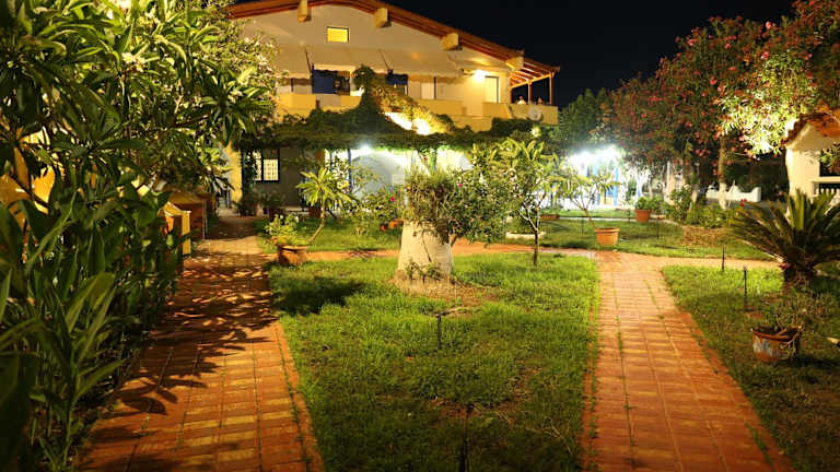Vias bietet Übernachtungsmöglichkeiten mit einem Garten, kostenlosem Privatparkplatz, einer Gemeinschaftslounge und einer Terrasse. Zu den Dienstleistungen gehört ein griechisches Restaurant und kostenloses WLAN. Die Unterkunft erlaubt keinen Check-in für Personen unter 18 Jahren und gestattet keine Haustiere.