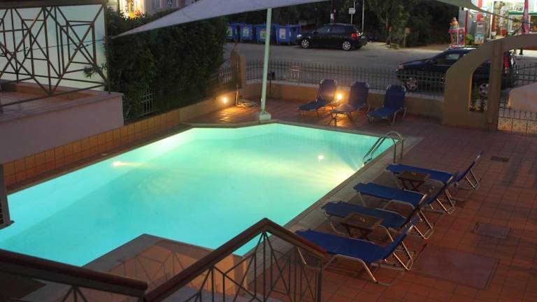 Die Vicky Apartments verfügen über einen schönen Außenpool, in dem Sie sich an warmen Tagen erfrischen können. Der Poolbereich ist von einem kleinen Garten umgeben und lädt zum Entspannen ein. In der Umgebung haben Sie die Möglichkeit, verschiedene Wassersportarten am Strand auszuüben oder die malerische Landschaft bei Wanderungen oder Radtouren zu erkunden.