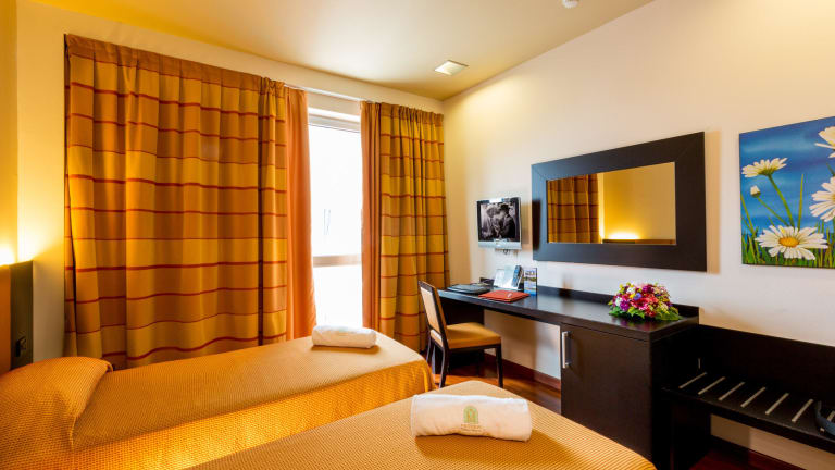Das Victoria Terme Hotel in Tivoli Terme bietet seinen Gästen einen entspannten und eleganten Aufenthalt. Die Lage im Thermalspa Le Terme di Roma Acque Albule ermöglicht es den Gästen, die nahe gelegenen historischen Villen Villa d'Este, Villa Adriana und Villa Gregoriana zu erkunden. Die öffentlichen Verkehrsmittel sind leicht erreichbar und bieten eine gute Anbindung an Rom und den Freizeitpark Rainbow MagicLand in Valmontone. Das Hotel selbst verfügt über ein helles Restaurant, das klassische italienische Küche und lokale Spezialitäten serviert. Die Zimmer sind elegant eingerichtet und bieten Annehmlichkeiten wie Highspeed-Internetzugang und eine individuell regulierbare Klimaanlage. Entspannen Sie im Partnerspa des Hotels, das mit Saunen, einem Türkischen Bad, einem Kneipp-Pfad und einem Whirlpool ausgestattet ist.