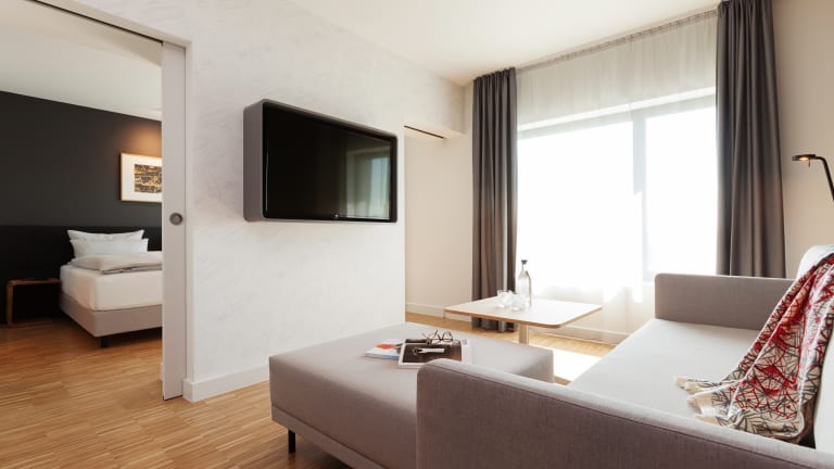 Jedes Bild hat seine ganz eigene Persönlichkeit, so auch unsere 129 Studios, Suiten und Zimmer. Zwischen 23 m² und 49 m² verfügen alle 129 Studios, Suiten und Zimmer über einen hohen Kommunikationsstandard und entsprechen dem Komfort, den ein Reisender heute erwartet. Sie erwartet ein klares Design mit wohnlicher Atmosphäre, Eichenholzparkett, zu öffnende Schallschutzfenster, individuelle Klimaanlage, Wasserkocher, teilweise Kitchenette, freies WLAN und LAN-Anschluss, USB Steckdosen am Arbeitsplatz und am Bett. Die hochwertigen Boxspringbetten in den Zimmern, Studios und Suiten sind eine Sonderentwicklung für unsere Hotels.