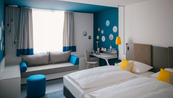 Neckarsulm ist geprägt von Ritterorden und Kultur und ist ein Magnet für große Unternehmen. Die Lebensfreude und die Region sind sicher Gründe dafür. Das Vienna House Easy Neckarsulm - ab 2016 im neuen Easy-Design, hat alles, was Sie sich auf Geschäftsreise oder einem Städtetrip wünschen: tolle Kulinarik, schnelles WLAN, super Zimmer und ein Team, das mit Leidenschaft Gastgeber ist. 94 gemütliche Doppel- und Loungezimmer, alle ausgestattet mit bequemen Möbeln und kostenlosem WLAN, stehen im Vienna House Easy Neckarsulm bereit. Beste Voraussetzungen für einen erholsamen Schlaf in der Schwaben-Metropole.