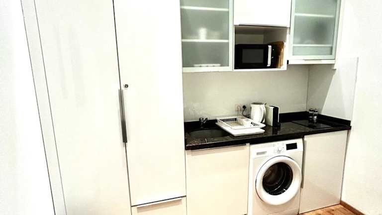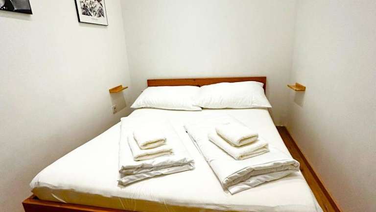 Die Ferienwohnung verfügt über ein Schlafzimmer sowie eine Küchenzeile, die mit einem Kühlschrank, einer Mikrowelle und einer Kaffeemaschine ausgestattet ist. Zudem sind Handtücher und Bettwäsche im Angebot enthalten.
