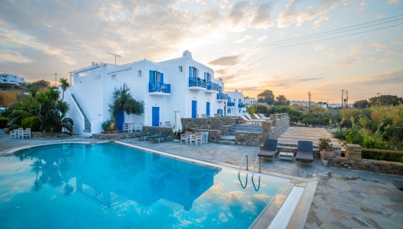 Das Vienoula's Garden Hotel liegt in der lebhaften Stadt Mykonos, nur 1 km vom schönen Strand Megali Ammos entfernt. Die Lage bietet eine perfekte Kombination aus Ruhe und Nähe zur Stadt. Der Hafen von Mykonos ist nur 1 km entfernt und der Flughafen erreicht man nach 3,5 km. In der Nähe des Hotels stehen kostenlose Parkplätze zur Verfügung.