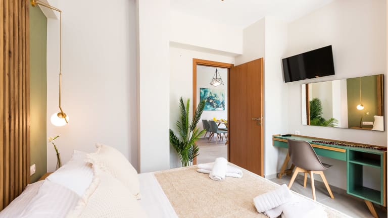 Die Unterkünfte in den Vigla Suites sind geräumig und bieten allen Komfort, den Sie während Ihres Aufenthalts benötigen. Jede Wohneinheit verfügt über einen Balkon mit Stadtblick, einen Flachbild-TV, einen Essbereich, eine gut ausgestattete Küche und ein eigenes Badezimmer mit kostenfreien Pflegeprodukten und einem Haartrockner. Zusätzlich sind ein Kühlschrank, ein Backofen, eine Mikrowelle, eine Kaffeemaschine und ein Wasserkocher vorhanden, so dass Sie Ihre eigenen Mahlzeiten zubereiten können.