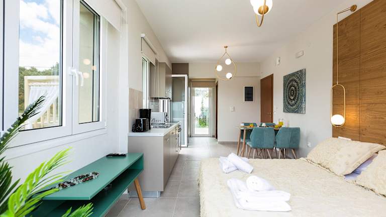 Die Vigla Suites bieten eine Reihe von Einrichtungen, um Ihren Aufenthalt angenehm und unterhaltsam zu gestalten. Sie können den Pool nutzen, um sich abzukühlen oder im Garten und auf der Terrasse entspannen. Genießen Sie den Meerblick und die ruhige Atmosphäre. In der Umgebung gibt es auch viele Möglichkeiten zum Wandern, Radfahren und für andere Outdoor-Aktivitäten.