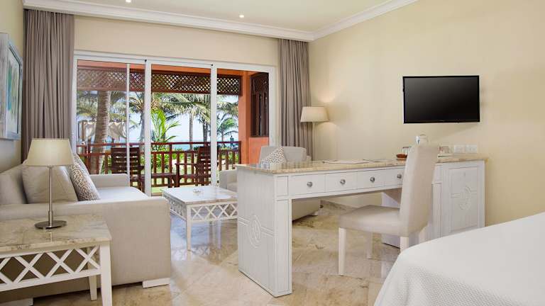 Jedes der 47 Zimmer des Hotels ist mit allen Annehmlichkeiten für einen angenehmen Aufenthalt unserer Gäste in Punta Cana ausgestattet. Willkommensprodukte Kinder Kinderbetten Information für Behinderte: Zugang von der Straße Türen im Zimmer Eingang: 86 cm Bad: 64 cm Balkon: 108 cm *Badezimmer ist nicht auf Behinderte angepasst Suiten Die 47 großzügigen Junior Suiten des VIK Hotels Cayena Beach bieten Blick auf das Meer und befriedigen die Wünsche auch anspruchsvollster Gäste