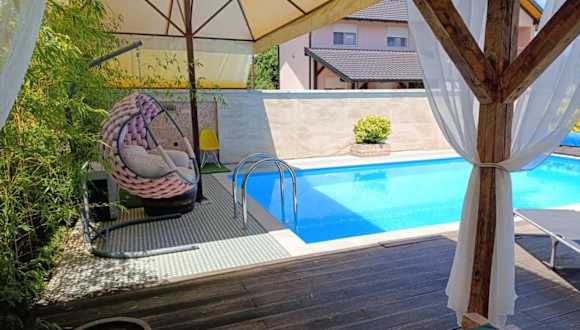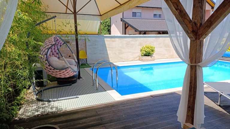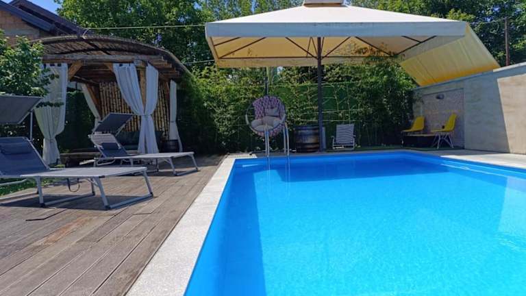 Das Vikendica Dunja in Loznica ist ein charmantes Ferienhaus mit einer Terrasse, einem eigenen Pool und kostenfreiem WLAN. Hier können Sie einen erholsamen Urlaub inmitten eines schönen Gartens genießen. Das Ferienhaus bietet alle Annehmlichkeiten, die Sie für einen komfortablen Aufenthalt benötigen, darunter eine gut ausgestattete Küche, ein gemütliches Wohnzimmer und ein Schlafzimmer. Handtücher und Bettwäsche werden gestellt, und kostenfreie Privatparkplätze stehen Ihnen ebenfalls zur Verfügung. Der internationale Flughafen Tuzla liegt nur 65 km entfernt.