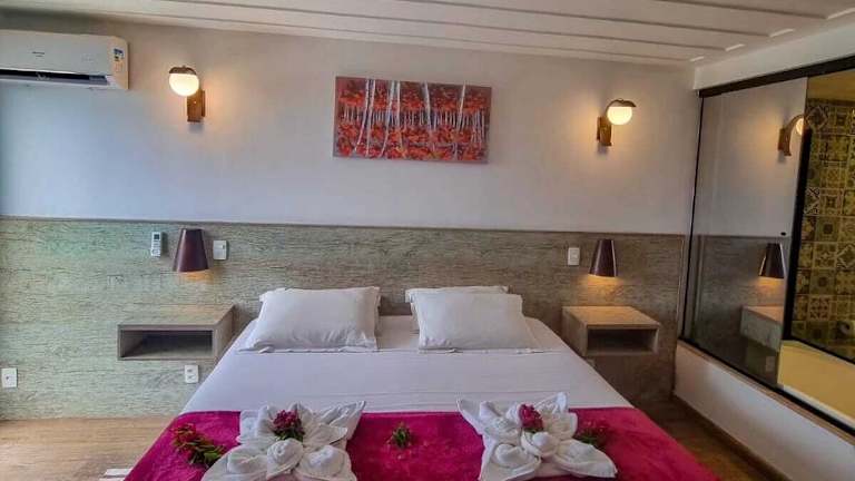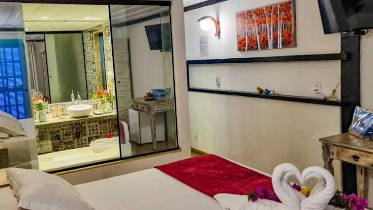 Die Zimmer in der Vila Bela-Emília sind klimatisiert und verfügen über einen TV sowie ein eigenes Bad mit kostenfreien Pflegeprodukten. Jedes Zimmer bietet einen komfortablen Rückzugsort, um nach einem langen Tag am Strand zu entspannen.