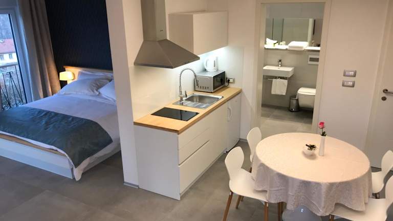 Das Aparthotel Vila Burbonka in Nova Gorica ist der ideale Ort, um einen erholsamen Urlaub mit Blick auf die Berge zu verbringen. Hier erwarten Sie komfortable Unterkünfte mit einer gut ausgestatteten Küche und kostenfreiem WLAN. Genießen Sie das kontinentale Frühstück und erkunden Sie die schöne Umgebung beim Wandern und Radfahren.