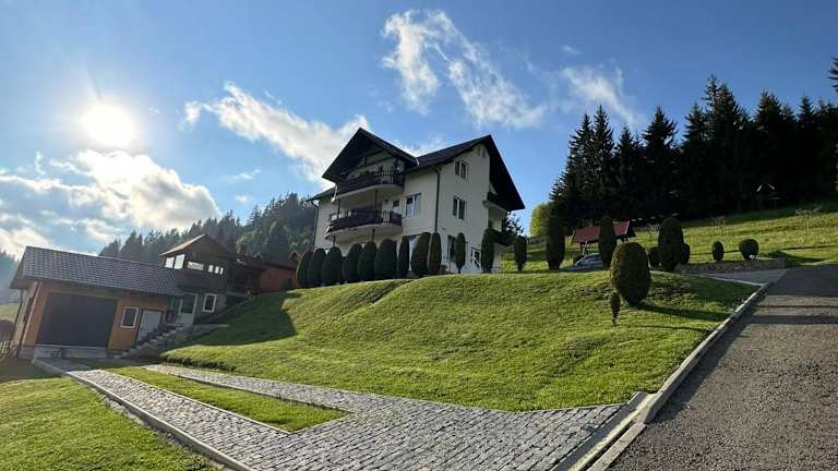 Die Vila Eduard befindet sich in einer malerischen Umgebung mit Blick auf die Berge. Sie liegt etwa 30 km vom Dino Parc entfernt, einem beliebten Freizeitpark. Das Erlebnisbad Aquatic Paradise erreichen Sie nach 45 km und den Rathausplatz nach 46 km. Der internationale Flughafen Sibiu ist etwa 157 km entfernt. Die ruhige und natürliche Umgebung der Villa lädt zu Spaziergängen und Erkundungen ein.