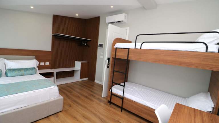 Die Zimmer verfügen über Klimaanlage, einen Flachbild-TV mit Kabelkanälen, einen Kühlschrank, einen Wasserkocher sowie ein eigenes Badezimmer mit Dusche, Badewanne und Haartrockner. Kostenloses WLAN ist ebenfalls in den Zimmern verfügbar. Die Ausstattung umfasst Bettwäsche und Handtücher. Einige Zimmer bieten einen Blick auf die Stadt.