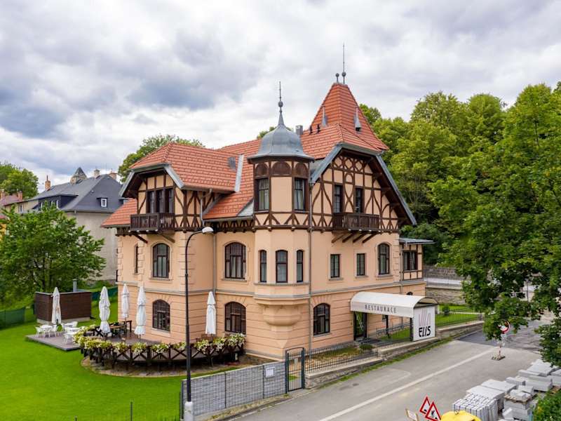 Die Vila ELIS in Jeseník bietet eine komfortable Unterkunft mit kostenfreiem WLAN und Parkplätzen. Der Garten und der Kinderspielplatz sorgen für Unterhaltung und Entspannung. Die Zimmer sind gut ausgestattet und bieten einen schönen Blick auf die Berge. Genießen Sie Ihr Frühstück im Restaurant des Hotels und entspannen Sie in der Infrarotsauna. Die Lage der Unterkunft ist ideal für Aktivitäten wie Skifahren und der Bahnhof Jeseník ist nur wenige Schritte entfernt.