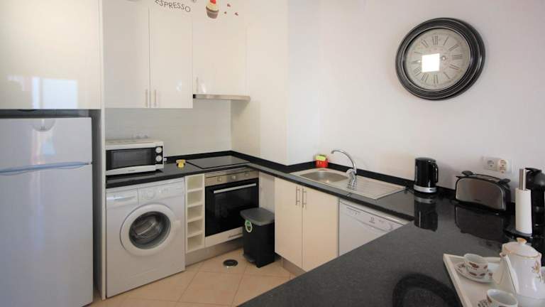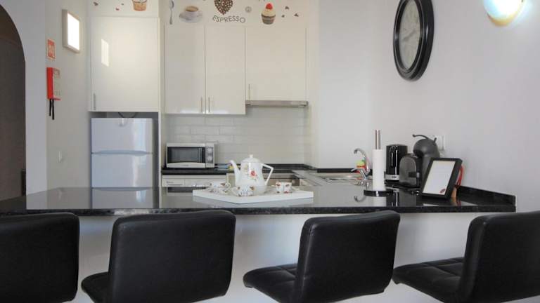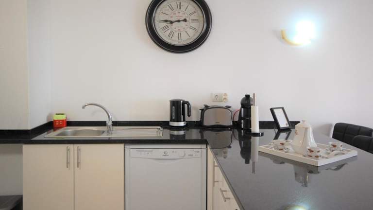 Die Ferienwohnung ist klimatisiert und verfügt über ein Schlafzimmer, ein Wohnzimmer, eine voll ausgestattete Küche mit Kühlschrank und Kaffeemaschine sowie ein Badezimmer mit Dusche und Haartrockner. Handtücher und Bettwäsche werden bereitgestellt.