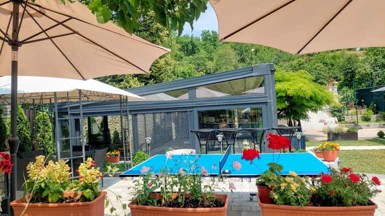 Die Vila MP Banstol 4*- Brdež do, Fruška gora in Inđija bietet Ihnen eine luxuriöse Unterkunft mit einem herrlichen Poolbereich und einem gepflegten Garten. Entspannen Sie sich in der Sauna oder im Whirlpool und genießen Sie die kostenfreien Privatparkplätze. Die Villa selbst ist klimatisiert und verfügt über alle Annehmlichkeiten, die Sie für einen komfortablen Aufenthalt benötigen. In der Umgebung können Sie verschiedene Aktivitäten unternehmen, wie zum Beispiel Wandern oder Darts spielen. Das SPENS Sports Centre und das Einkaufszentrum Promenada sind ebenfalls leicht zu erreichen.