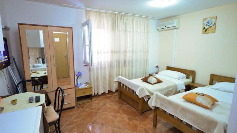 Die Villa Nada ist eine ruhig gelegene Unterkunft, nur wenige Kilometer von der Altstadt von Zadar entfernt. Hier können Sie sich auf gemütliche Zimmer mit Sat-TV und Balkon freuen. Kostenloses WLAN und sichere Parkplätze stehen zur Verfügung. Genießen Sie die individuell gestalteten Unterkünfte, einige mit voll ausgestatteter Küche und eigenem Bad. Der gepflegte Garten mit Grillmöglichkeiten lädt zum Entspannen ein. Die Villa Nada bietet auch organisierte Ausflüge zu den nahe gelegenen Nationalparks Krka, Paklenica, Kornati und Plitvicer Seen. Der Busbahnhof, der Bahnhof und der Fährhafen Zadar befinden sich in der Nähe. Der Flughafen Zadar ist nur 9 km entfernt und ein Abholservice sowie ein Shuttleservice sind gegen Aufpreis verfügbar.