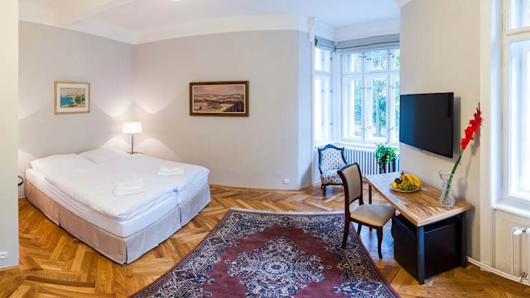 Das Hotel Vila Olga ist eine charmante Unterkunft im Jugendstil, umgeben von malerischen Teichen und Wäldern. Hier können Sie die Natur in vollen Zügen genießen und sich in einer entspannten Atmosphäre wohlfühlen. Das Hotel bietet kostenfreie Privatparkplätze und komfortable Zimmer mit Annehmlichkeiten wie einem LCD-Sat-TV und kostenfreiem WLAN. Genießen Sie die vielen Freizeitaktivitäten in der Umgebung, wie Golfen, Radfahren und Tennis. Die Nähe zu Prag und Kuttenberg ermöglicht auch Ausflüge in die umliegenden Städte.
