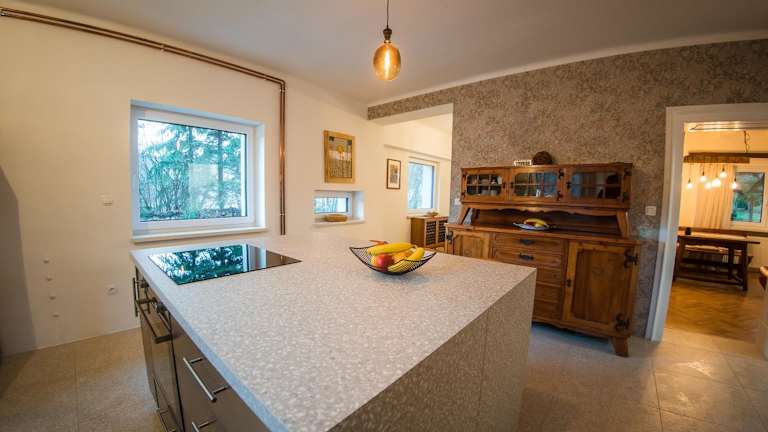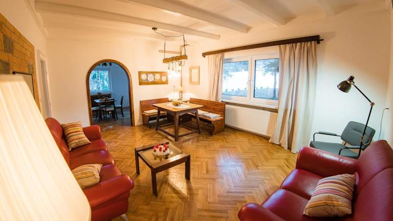 Die Vila Park Ravne in Ravne na Koroškem ist eine ideale Unterkunft für einen aktiven Urlaub. Mit einem Fitnesscenter, einem Garten und einer Gemeinschaftslounge bietet die Villa ihren Gästen zahlreiche Möglichkeiten zur Entspannung und Freizeitgestaltung. Die geräumige Villa verfügt über 5 Schlafzimmer, ein Wohnzimmer, eine voll ausgestattete Küche und 6 Badezimmer. Kostenfreies WLAN und Privatparkplätze stehen zur Verfügung. In der Umgebung können Sie Skifahren und Radfahren. Das Werner Berg Museum und das Skigebiet RibniÅ¡ko Pohorje-Kope sind ebenfalls in der Nähe.