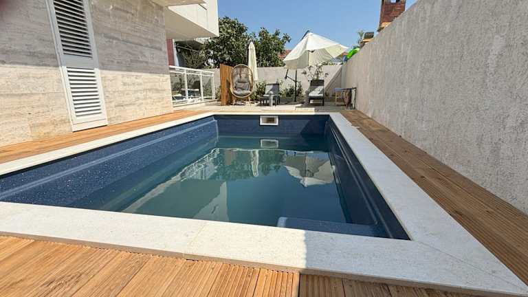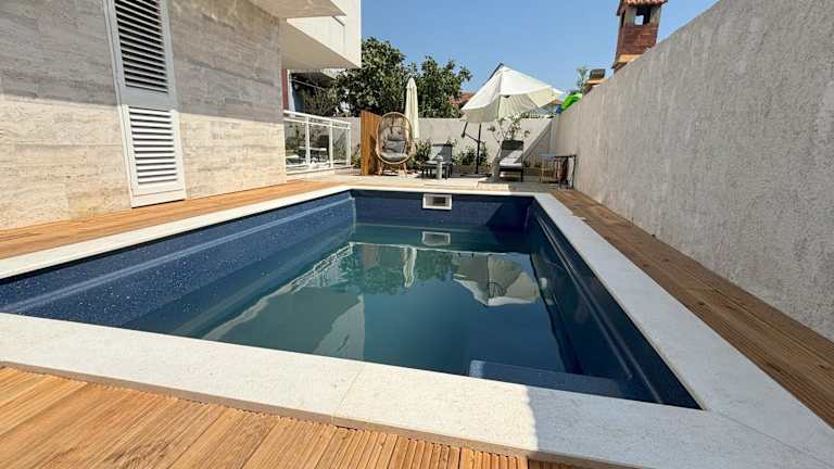 Vila Regina Apartment Paloma with Swimming Pool bietet Übernachtungsmöglichkeiten in einer Ferienwohnung. Die Unterkunft ist direkt am Strand gelegen und umfasst eine Terrasse sowie Zugang zu einem Garten. Kostenlose Parkmöglichkeiten sind ebenfalls vorhanden, ebenso wie kostenloses WLAN.