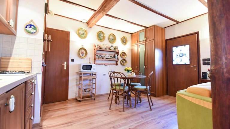 Das Ferienhaus umfasst 1 Schlafzimmer, ein Wohnzimmer und eine gut ausgestattete Küche. Zur Ausstattung der Küche gehören ein Kühlschrank und ein Geschirrspüler. Des Weiteren ist ein Flachbild-TV vorhanden.