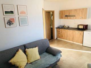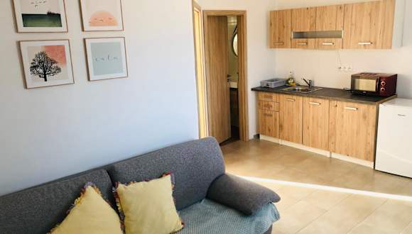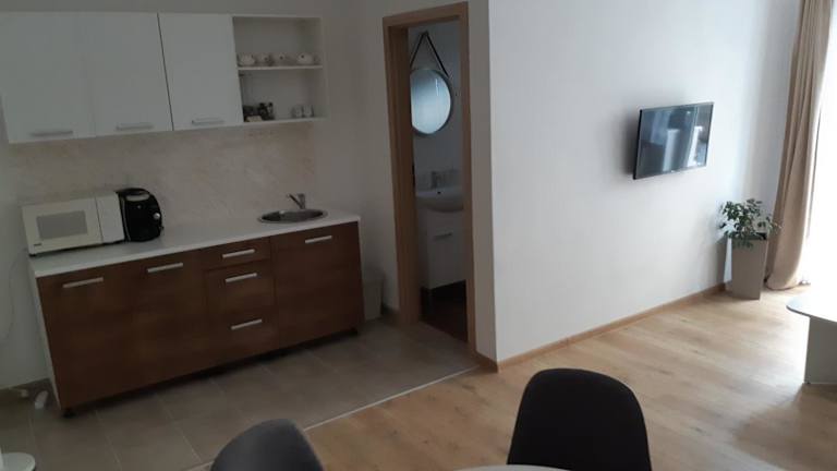 Die Wohneinheiten sind mit einer voll ausgestatteten Küche ausgestattet, die eine Herdplatte, einen Kühlschrank, eine Kaffeemaschine und einen Wasserkocher umfasst. Zudem steht ein Essbereich zur Verfügung.