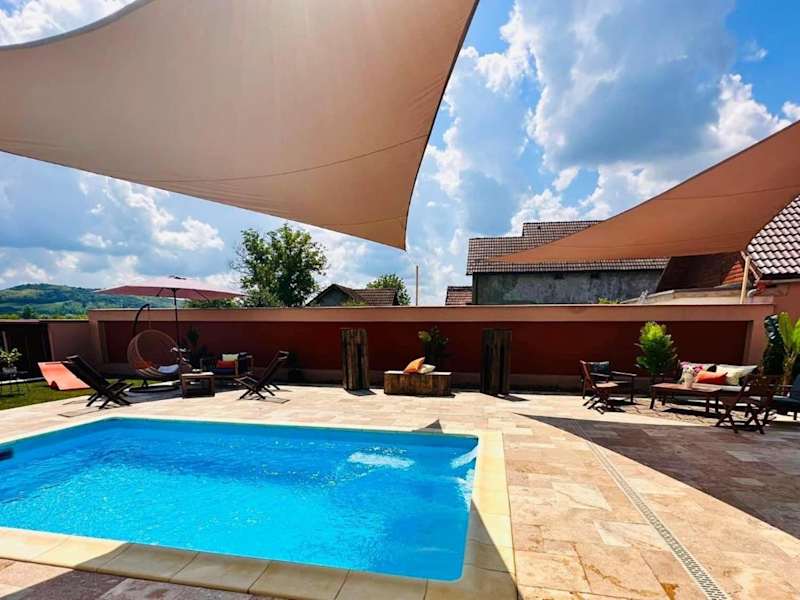 Die Villa 112 bietet einen saisonalen Außenpool, in dem Sie sich an warmen Tagen erfrischen können. Der Garten und die Terrasse laden zum Entspannen und Sonnenbaden ein. Für zusätzlichen Komfort steht ein Whirlpool zur Verfügung, in dem Sie sich nach einem ereignisreichen Tag entspannen können. Erkunden Sie die Umgebung und besuchen Sie die nahegelegenen Festungskirchen Valea Viilor und Biertan, um mehr über die Geschichte und Kultur der Region zu erfahren.